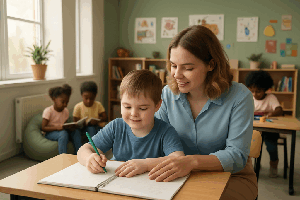 Sie unterstützt Kinder individuell im Schulalltag, z. B. bei sozialer Integration, Selbstständigkeit, Lernförderung und Alltagsaufgaben.